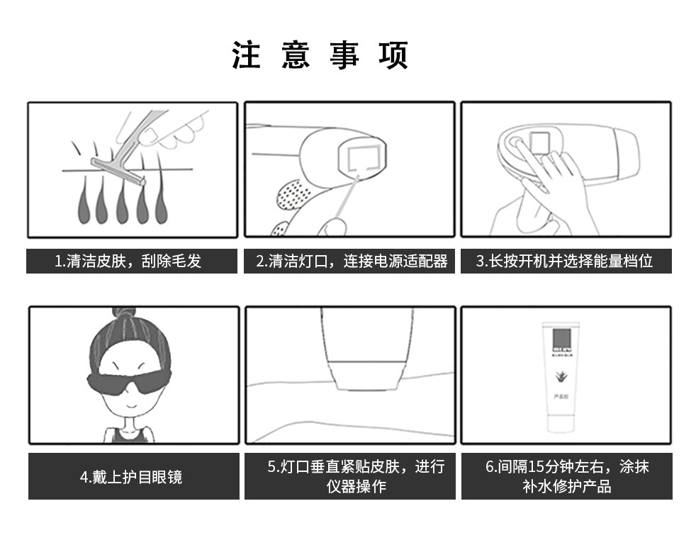 全身脫毛 · 單閃OR連打 · 智能膚色檢測 · 靜毛不反復 · 50萬次閃光